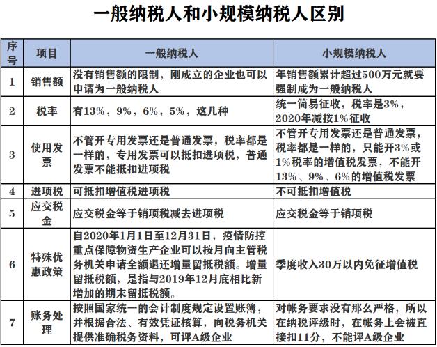 对于小规模纳税人与一般纳税人的区别,我汇总为一个表格,如下所示: