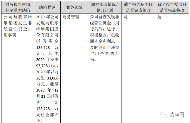 1. 上一年度内部控制缺陷整改情况
